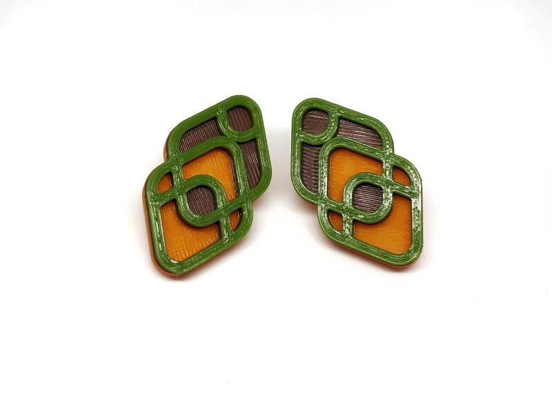 Gli orecchini sono stati disegnati in 3D con un programma di modellazione e stampati con una