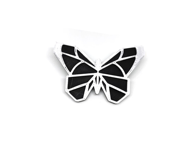 La spilla è stata disegnato in 3D con un programma di modellazione e stampato con una stampante 3D.