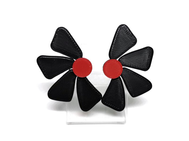 Gli orecchini sono stati disegnati in 3D con un programma di modellazione e stampati con una