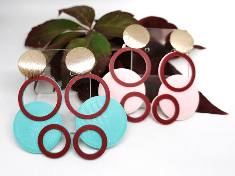 Gli orecchini sono stati disegnati in 3D con un programma di modellazione e stampati con una