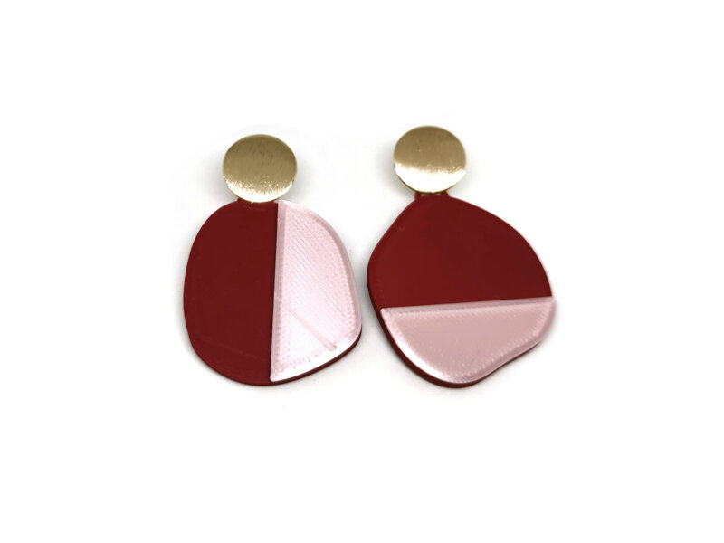 Gli orecchini sono stati disegnati in 3D con un programma di modellazione e stampati con una