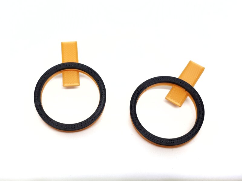 Gli orecchini sono stati disegnati in 3D con un programma di modellazione e stampati con una