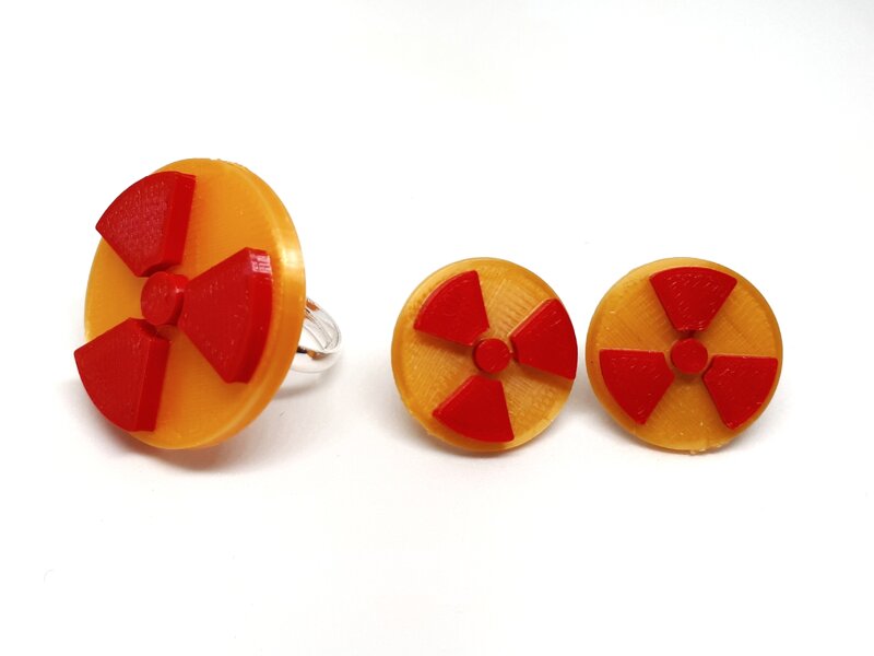 L'anello e gli orecchini rappresentano la copertina dell'album dei Kraftwerk "Radioactivity". I due argomenti principali trattati nell'album sono:
